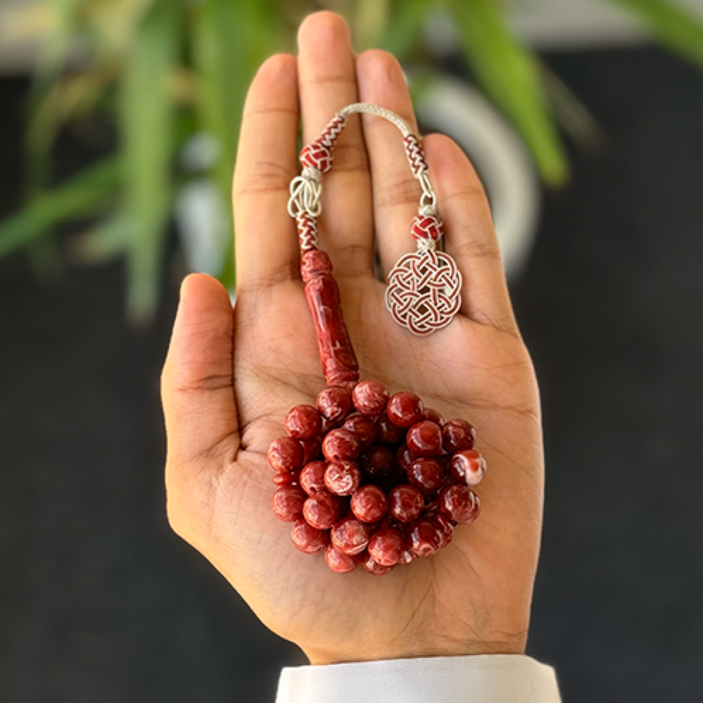 مسباح بكلايت عنابي مخلوط طرابزونية فضة